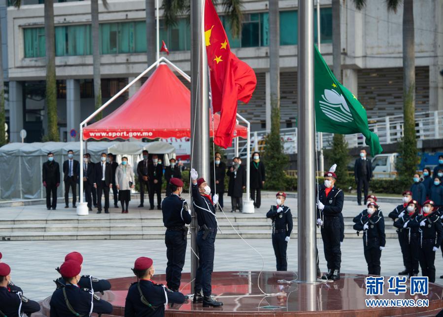 新华社澳门12月20日电 澳门特别行政区政府12月20日早晨在金莲花广场举行隆重的升旗仪式,庆祝澳门回归祖国21周年。
