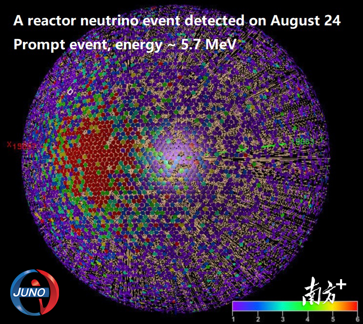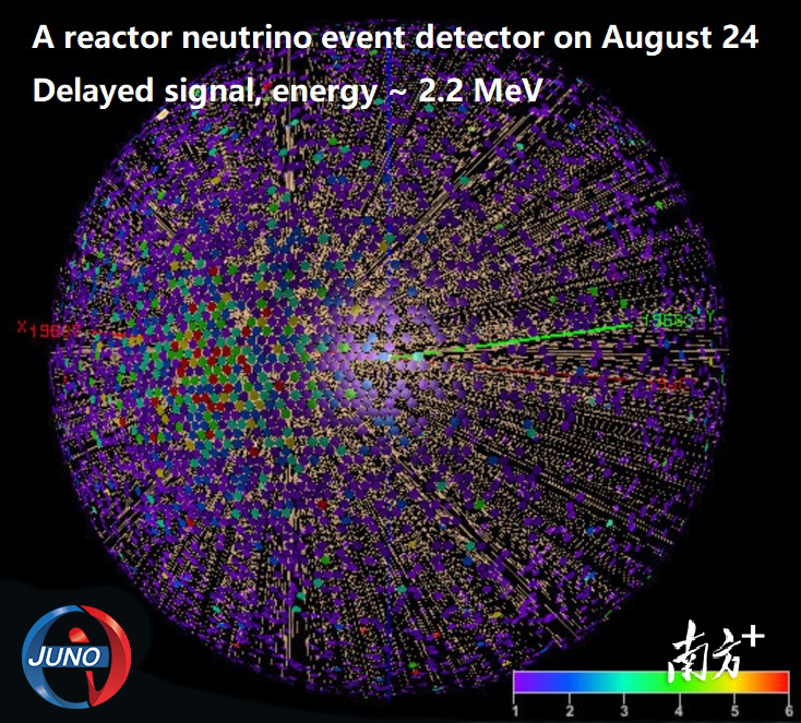 JUNO探测到的一个反应堆中微子事例。刘悦湘摄