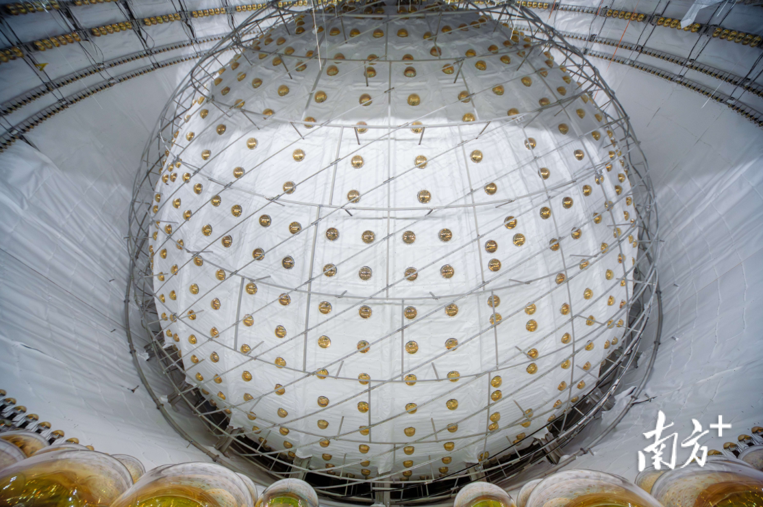 中心探测器内部的有机玻璃球及光电倍增管。刘悦湘摄